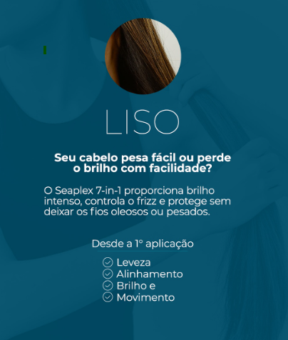 👉 Experimente o Seaplex 7-in-1 e descubra o poder da biotecnologia marinha no seu cabelo.
